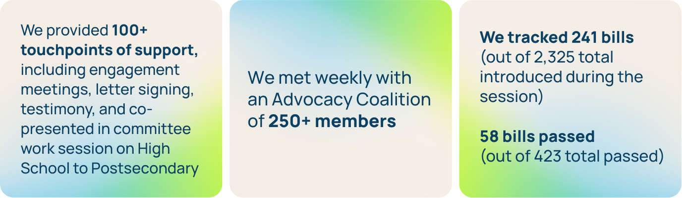 Keep up with us in the interim by joining our Advocacy Coalition. You can also find more legislative session recap materials on our Advocacy page.